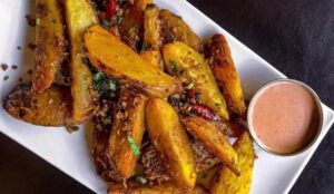 Earthy, lightly spicy potatoes tossed in Himalayan spices; crispy outside, soft inside....